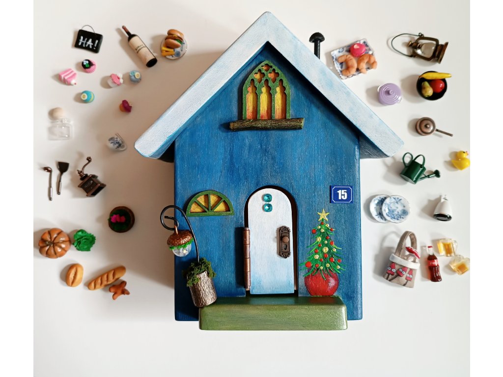 Ručně malovaný domeček z bukového masivu – 24 x 20 x 8 cm
