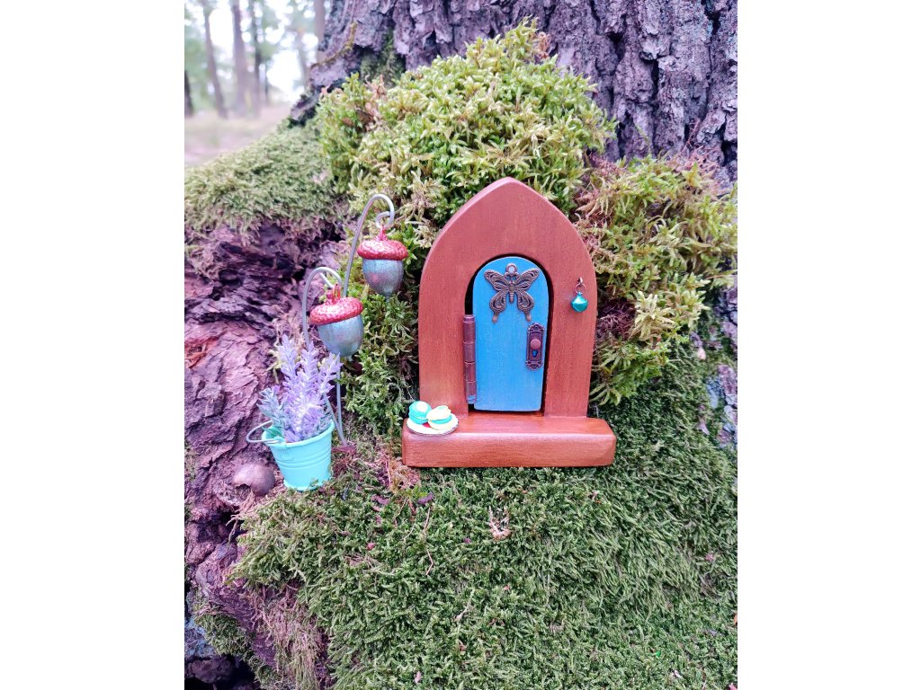 Dvířka jsou natřena voděodolnými lazurami, které jsou určené pro dětské výrobky. Jsou určena spíše pro domácí skřítky, trochu deště snesou, ale třeba rolničkám vlhko nedělá dobře. Pokud si přejete mít dvířka u pařezu, doporučujeme je před vlhkostí schovat.